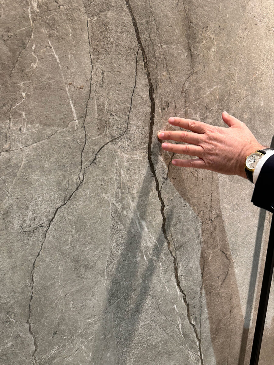 Une tendance remarquable est le retour en force du plan de travail épais. Chez les marques de design italiennes, le plan de travail gagne à nouveau en volume. La céramique reste le matériau privilégié par les fabricants. Marazzi se distingue avec des impressions 3D et le magnifique Silver Root. Une couleur à surveiller.