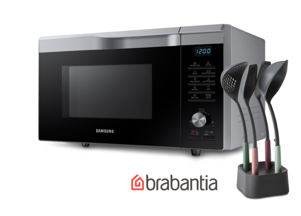 De consument ontvangt een gratis Brabantia keukengerei set Tasty bij aankoop van een Samsung combi microgolfoven.